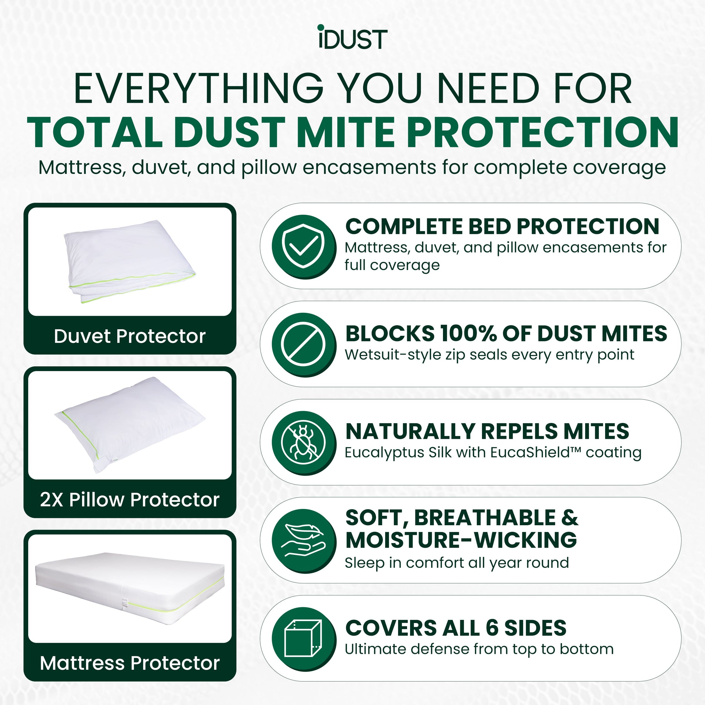 Anti-Allergy Dust Mite Protector Set | Mattress, Pillow & Duvet